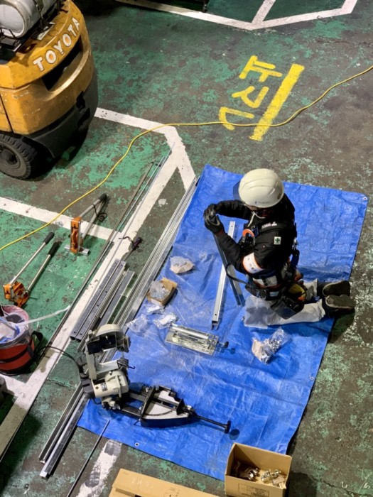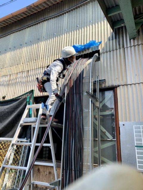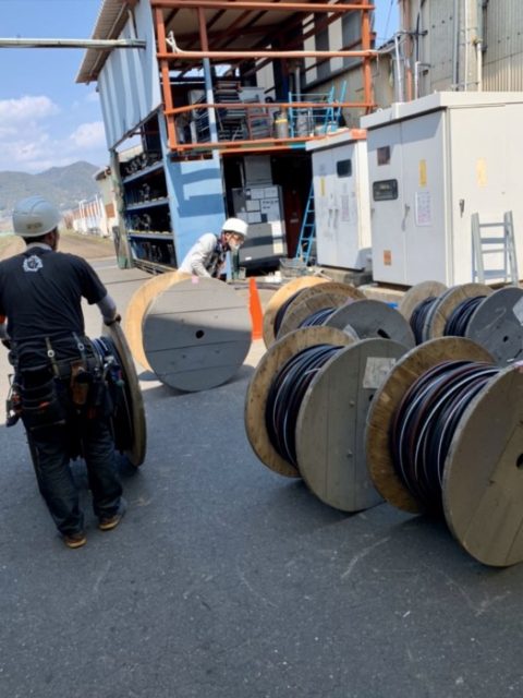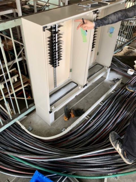 本日、いよいよケーブルラック配線敷設工事を迎えました。合計20回線の1200mのケーブルです。